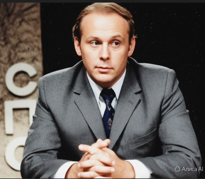 Владимир Затонский в эфире. Фото реставрировано с помощью ИИ.